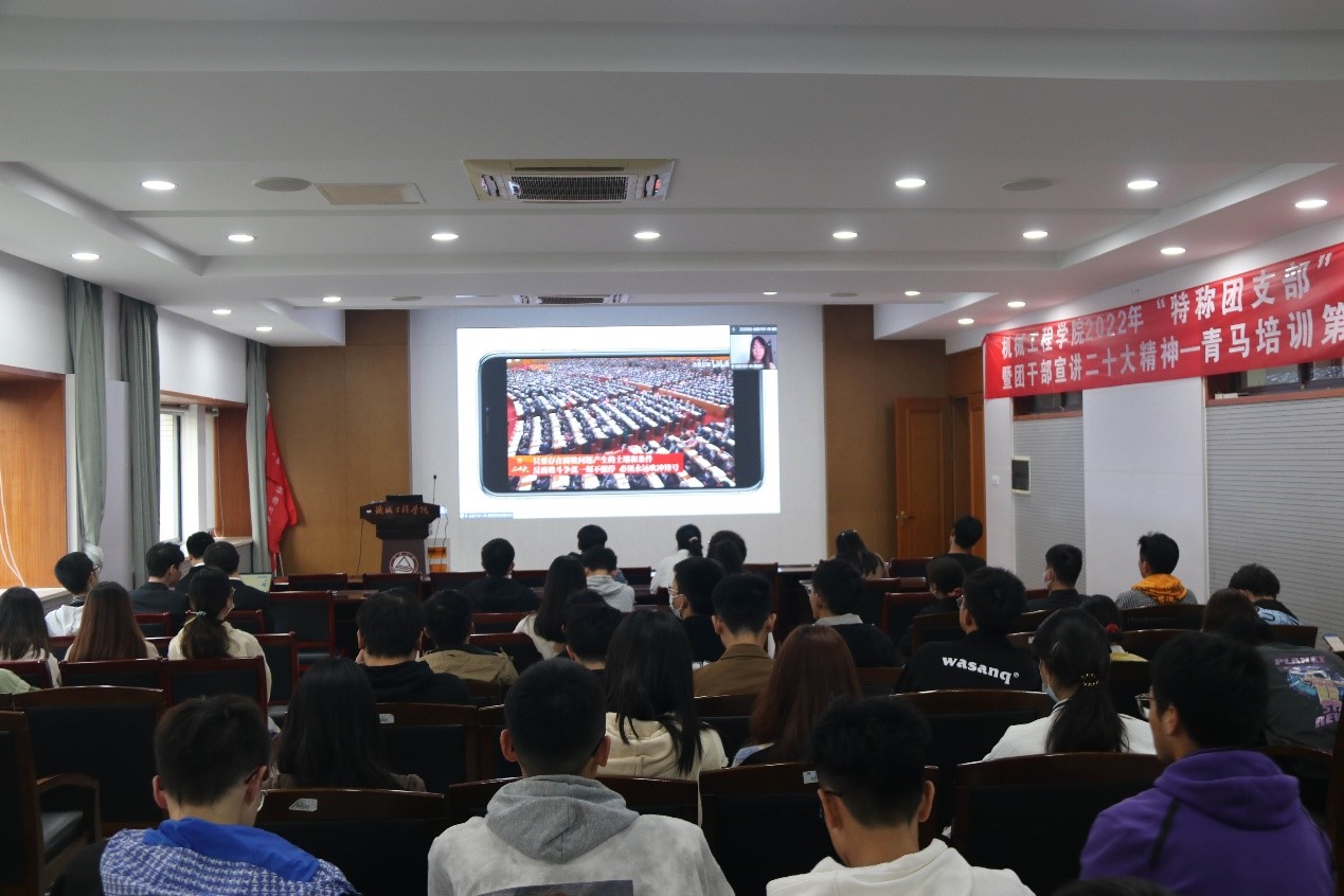 “团干部宣讲二十大”精神活动暨“青年马克思主义者培养工程”培训班第三讲在机械楼C302会议室举办,包装1901团支部书记廖恺芯以《担当复兴大任,成为时代新人》为主题进行宣讲。