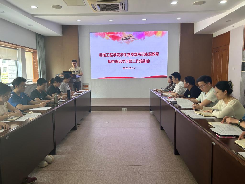 学生党支部书记主题教育集中理论学习暨工作培训会在学院C302会议室举行。学院分团委书记孟召双,辅导员潘智琦、余骏皓及13名学生党支部书记参加本次会议。