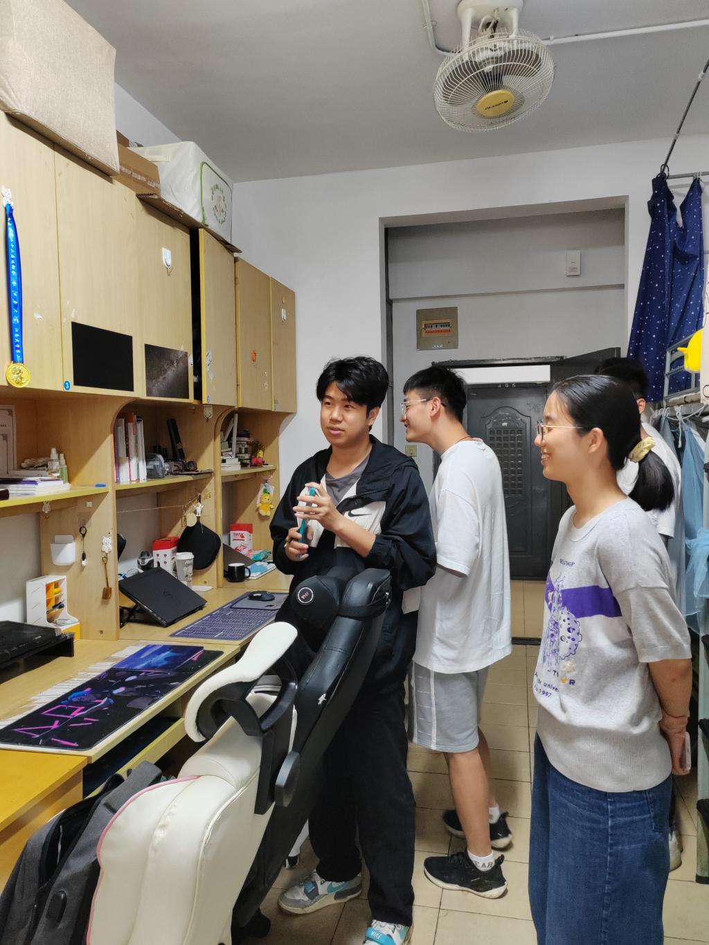 先进制造研究中心研究生第一党支部与包装技术与机械科研中心研究生第一党支部深入学生宿舍,开展“我为师生办实事”活动。党支部八名学生党员与辅导员张倩瑶、宋京姝走进2022级16个宿舍现场与学生面对面交流。
