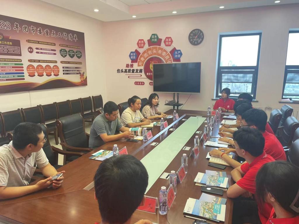 “乡村振兴主要围绕产业发展,有了产业,保证农民的衣食住行,才能继续发展农民的精神生活。”实践团在包头市宣传部部长乔成的陪同下来到了包头市人民政府共青团包头市委员会,与农牧局青年先锋官黄昌鑫、王蒙惠,乡村振兴局相关负责人梁雅妮等进行交谈。在交流中,实践团了解包头市产业整体发展情况,也深刻理解“因地制宜”在乡村振兴中的重要作用。他们讲到,内蒙古特殊的地理位置、气候条件等都让乡村振兴要突破的难题更多,但是他们要做的就是集中力量“破局”,找到突破点。乌兰计作为昆都仑区典型的农村传统部落,充分利用气候较干燥的条件,邀请非遗草编老师指导村民们一起将玉米皮和玉米秆“变废为宝”,采取村民制作、合作社回收、统一售卖模式,让村民们的获得感满满。实践团也和相关负责人了解到乡村振兴共性难题,即人才的缺乏,他们积极利用“小鹿回家”等项目吸引青年来到包头助力发展。在交流中,当了解到17吃瓜