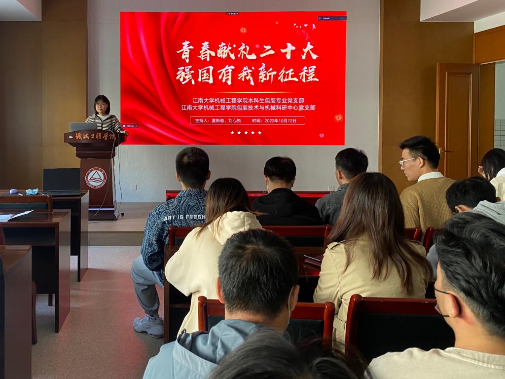 包装技术与机械科研中心党支部、本科生包装工程专业党支部在机械楼C302会议室,采用线上线下相结合的方式联合开展“青春献礼二十大,强国有我新征程”组织生活会,指导教师张倩瑶、全体党支部成员参加会议。本次会议由本科生包装工程专业党支部书记夏斯璇主持。