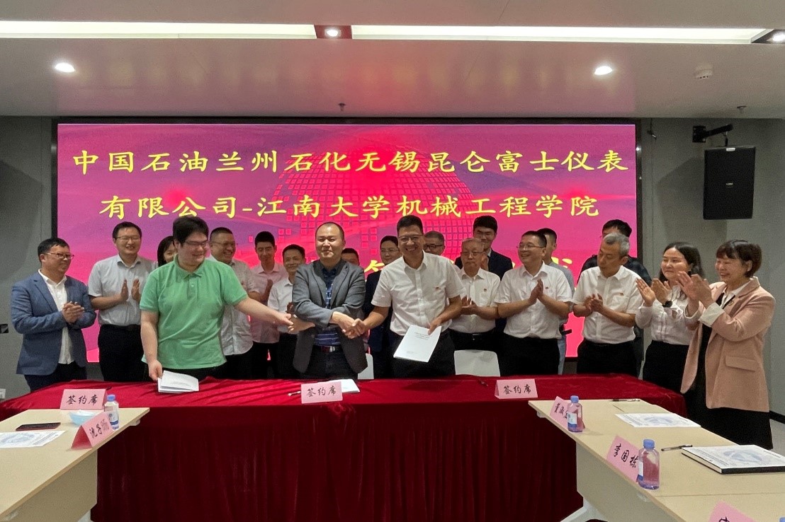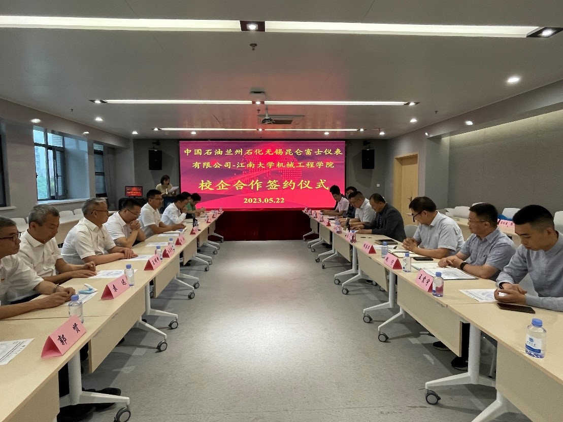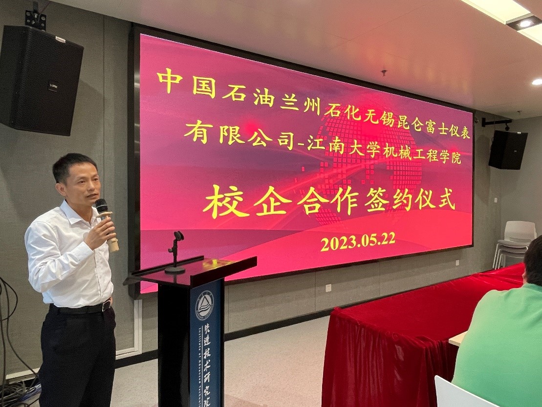 与中国石油兰州石化无锡昆仑富士仪表有限公司产学研战略合作签约仪式在先进技术研究院A302会议室举行。无锡市高新区科技局副局长李振东,中国石油兰州石化无锡昆仑富士仪表有限公司党总支书记、总经理杨德寿,17吃瓜