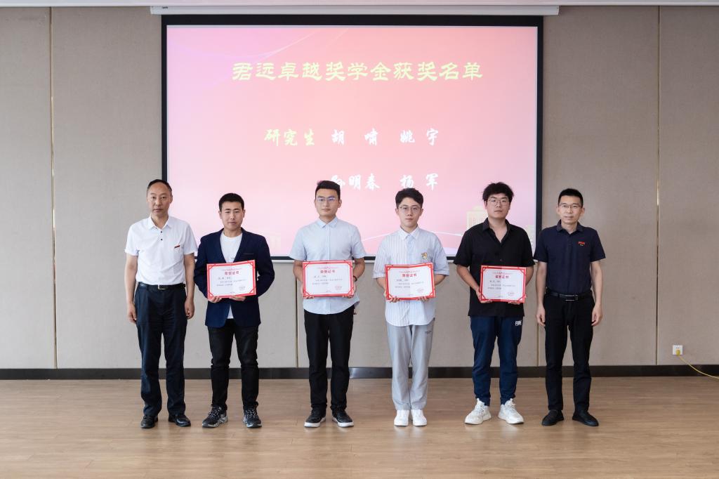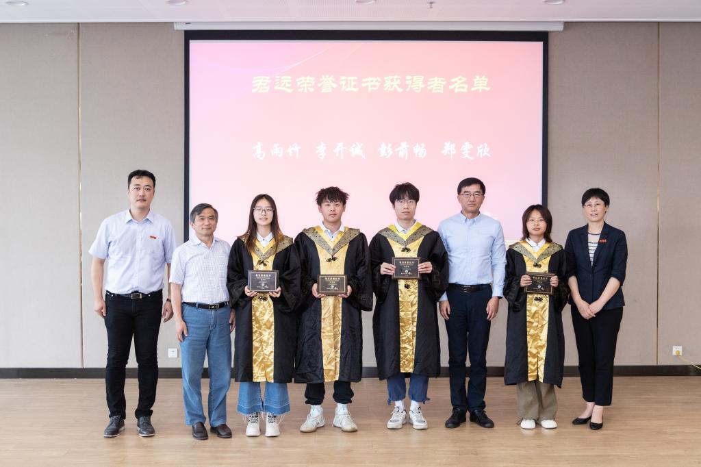 紧接着,李可致辞。他充分肯定了同学们在大学四年从本科课本知识到科创比赛中所取得的不菲成绩,也对同学们提出了“守正笃实,久久为功”“踔厉奋发,勇毅前行”“敢为人先,追求卓越”三点期望。最后他暖心提出君远学院永远是毕业学子的坚强后盾,并祝福同学们前程似锦。随后,嘉宾为获得君远荣誉证书、君远单项奖学金、君远卓越奖学金、君远卓越奖教金等获奖师生颁发证书并合影留念。