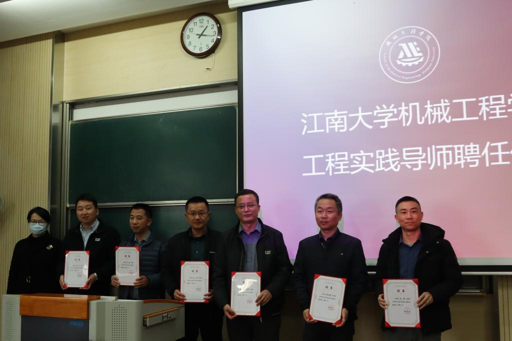 仪式上,萧欣彤简要的介绍了“工程实践导师”项目的背景,并宣读了聘任决定,聘任田国平等6位来自卡特彼勒公司的研发工程师担任工程实践导师。由刘升恒为工程实践导师颁发聘任证书。
