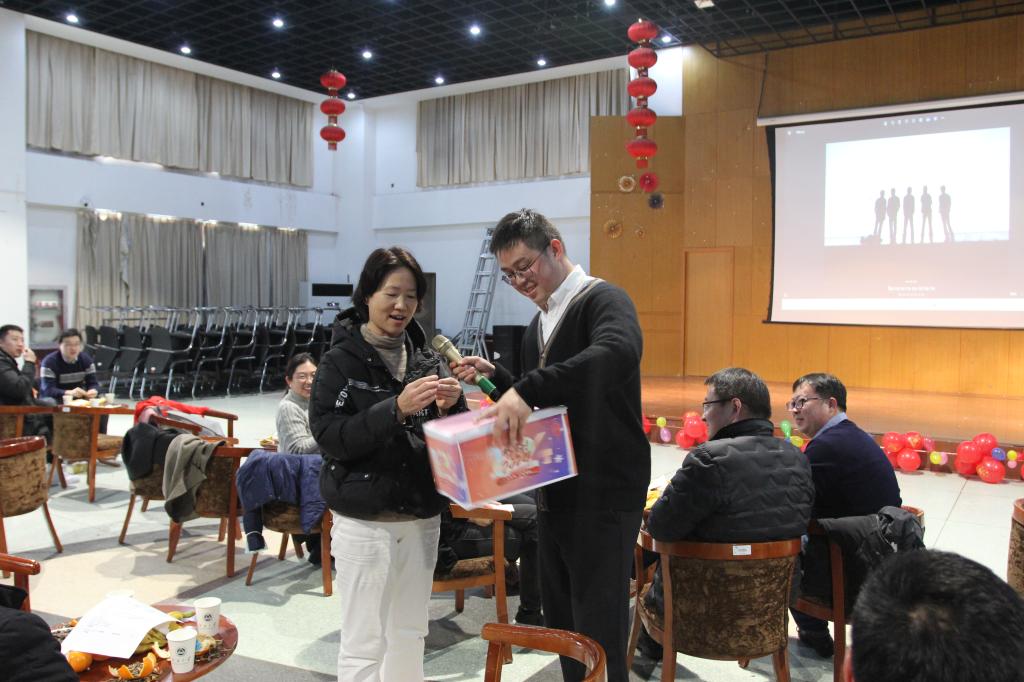 接着,汇演阶段。各系部老师精心准备了形式多样、精彩纷呈的文艺节目。《蓝莲花》《真心英雄》《朋友》《一生有你》《这世界有那么多人》等优美动听的歌曲,以系部组合演唱、集体演唱等形式纷纷亮相;《我喜欢蹲下身来》等教职工自创自演的诗朗诵,成功展示了理工科教师的内心文艺范;排萧独奏《大鱼》《寂静之声》,赢得了听众阵阵掌声。期间,抽奖和游戏环节,更是欢声笑语,热闹非凡。最后,热情洋溢的劲舞表演《相亲相爱一家人》,赢得了台上台下的积极互动与观众们的声声欢呼。学院2024迎新春联欢会在充满欢乐的气氛中圆满结束。