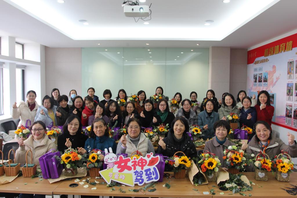 分工会组织开展创意插花活动,学院女教工积极参加,节日氛围热烈浓厚。