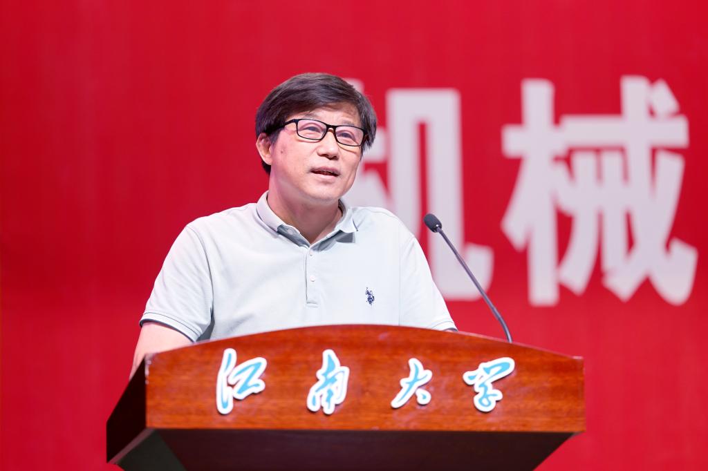 机械工程系俞经虎教授作教师代表发言,他结合自身科研经历及教学经验为新生们提出三点建议:第一要志存高远,做面向国家需求的学问;第二要脚踏实地,做经得起实践检验的真学问;第三要敢想敢做,做守正创新的新学问,在今后的征途中,披荆斩棘,勇往直前,用拼搏奋斗书写人生的新篇章。