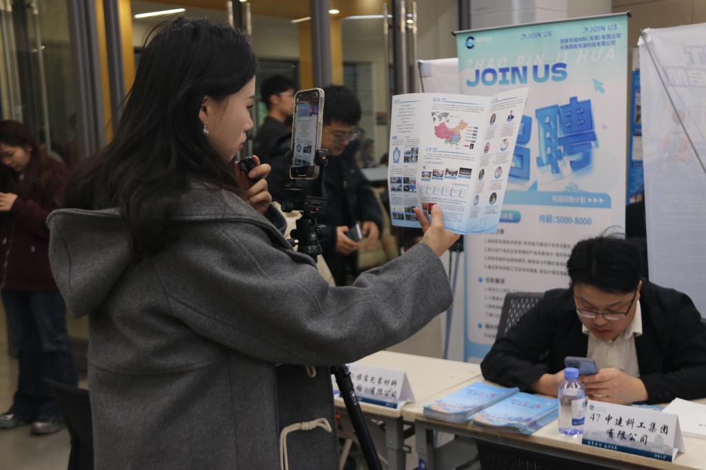 招聘会邀请到了京东方科技集团股份有限公司、徐州徐工矿业机械有限公司、江苏亚威机床股份有限公司等五百强企业,中建四局第六建设有限公司、江苏新银叶传动机电有限公司、无锡瑞吉德机械有限公司等学院董事单位参与,现场共73家高质量单位布展,为毕业生提供近800个岗位,吸引了学院千余名毕业生到场参加,线上直播吸引7500人观看,在线服务156人。招聘会现场特设“无比爱才,‘锡’望您来”专场,34家在锡企业携手向机械学子发出就业邀请。17吃瓜