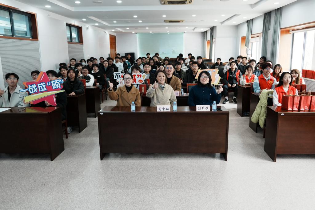 于12月4日下午在学院楼C302会议室开展“不‘械’努力,一‘研’为定”2025届本科生考研慰问活动,学院党委书记高雪梅,党委副书记、副院长刘升恒,学工办主任兼分团委书记李诗炜,辅导员何涛及百余名考研学生代表出席本次活动。活动由2021级辅导员余骏皓主持。