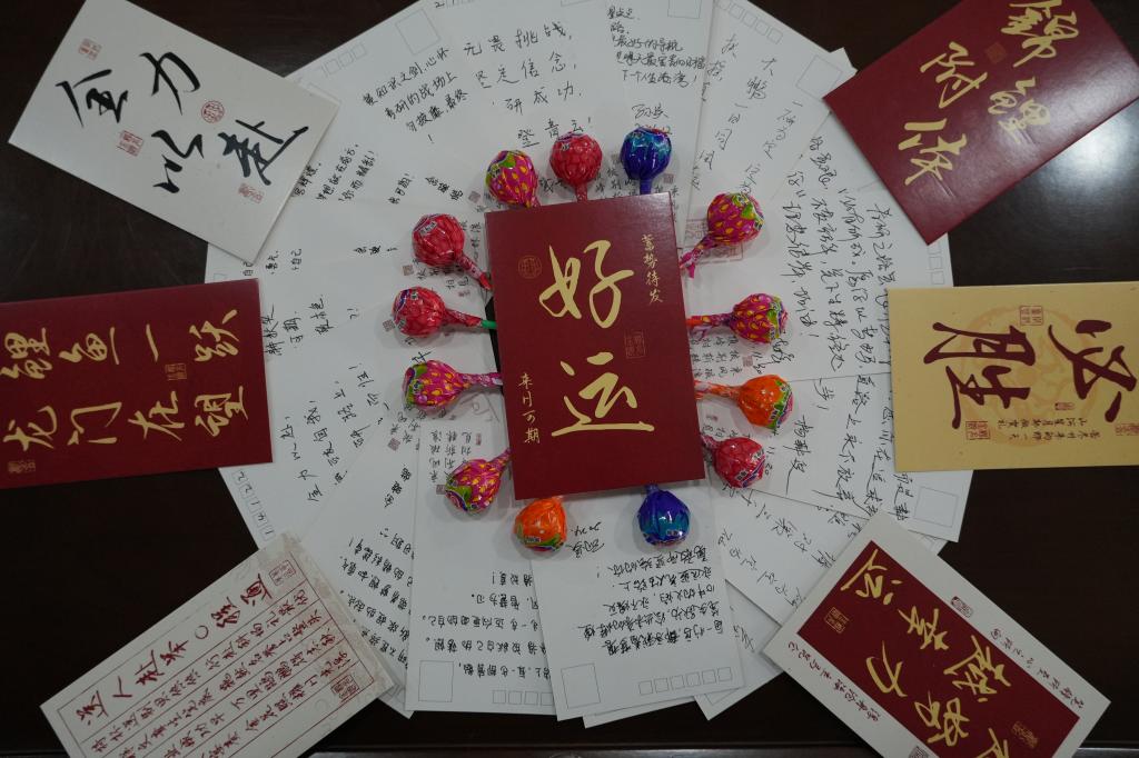 随后,老师们发放精心准备的考研加油包,定制礼包中有七件爱心礼品,包括寓意“牛气冲天”的牛奶、“苹”安上岸的苹果、前“橙”似锦的橙子、“棒”上有名的棒棒糖,“暖心暖意”的暖宝宝、“一举夺魁”的祈福文具以及班主任老师手写的加油明信片。每一件礼物都承载着学院对考研学子美好的祝愿、温暖的慰问和殷切的期望。
