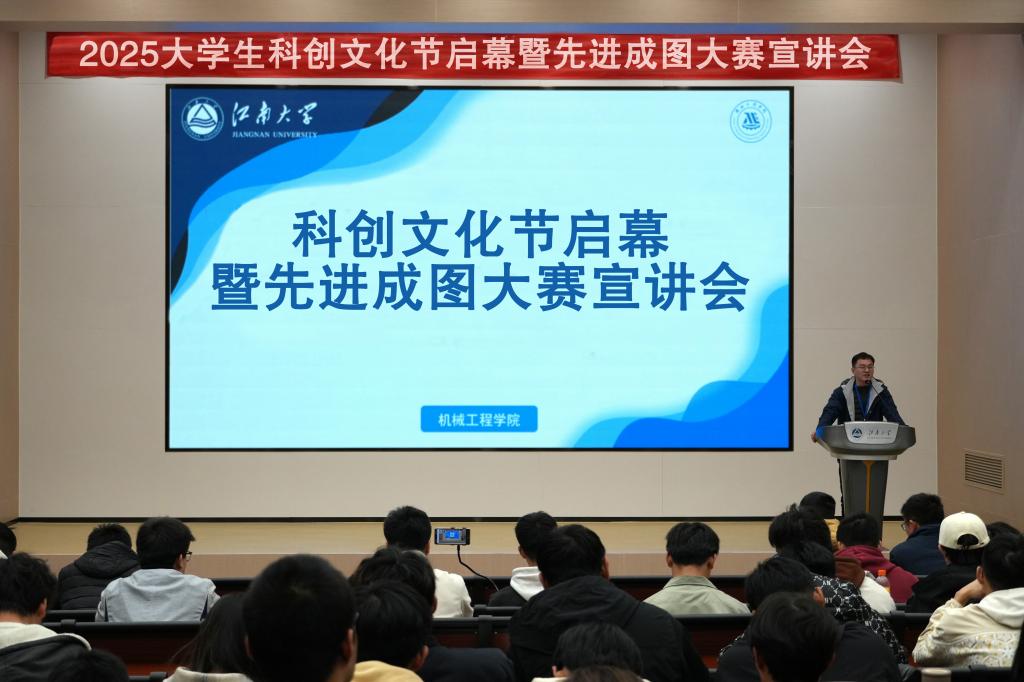 2025大学生科创文化节正式启动,首场活动——先进成图技术与产品信息建模创新大赛宣讲会在1C109报告厅举办。