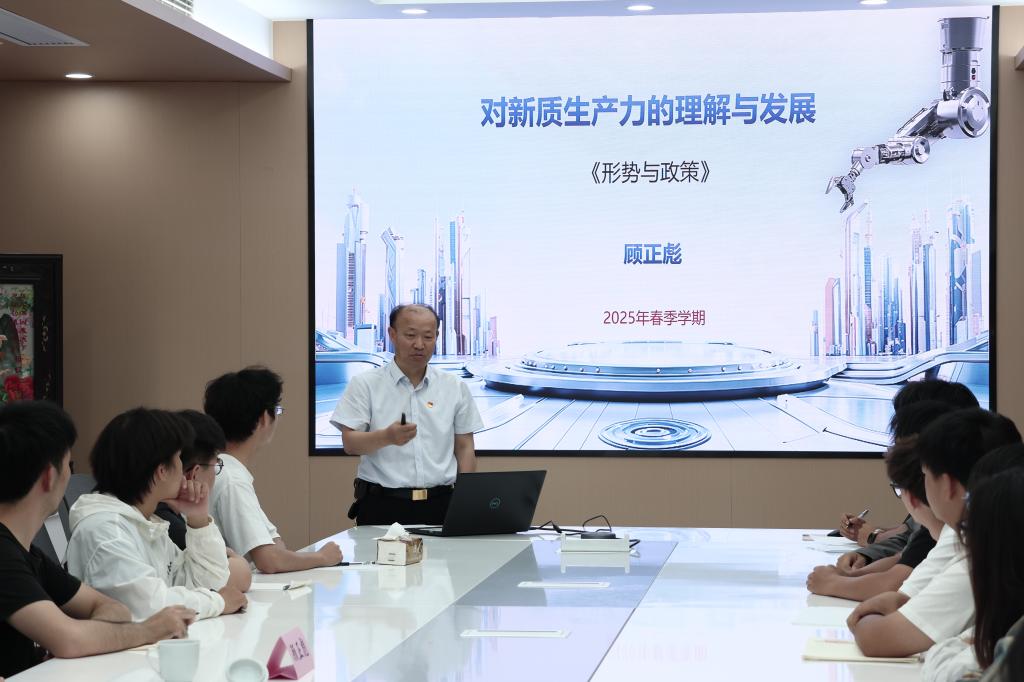 机械2304团支部,为团员青年讲授《深刻把握新质生产力与新型生产关系》专题思想政治课。学院党委书记高雪梅,党委副书记、副院长刘升恒,班主任周旭及机械2304团支部全体同学参加活动。