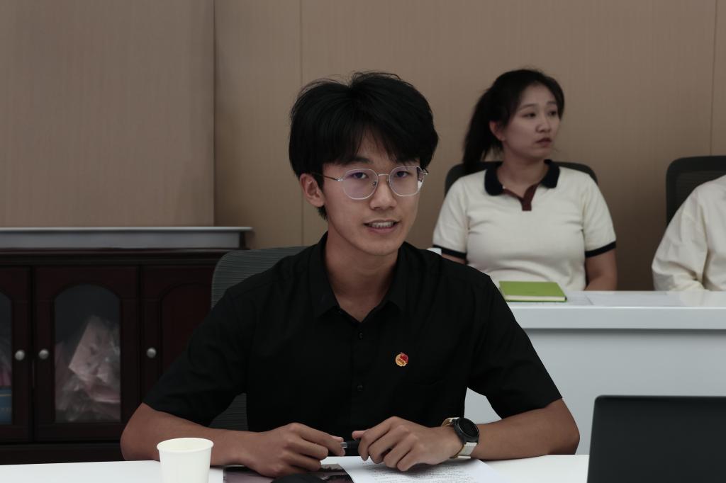 的学习生活感悟。史昊东结合专业学习与校园实践,畅谈在适应大学生活过程中“主动求变”的收获;路嘉成以“奔跑者”的姿态,讲述了在学业与兴趣平衡中“奋力奔跑”的体会。