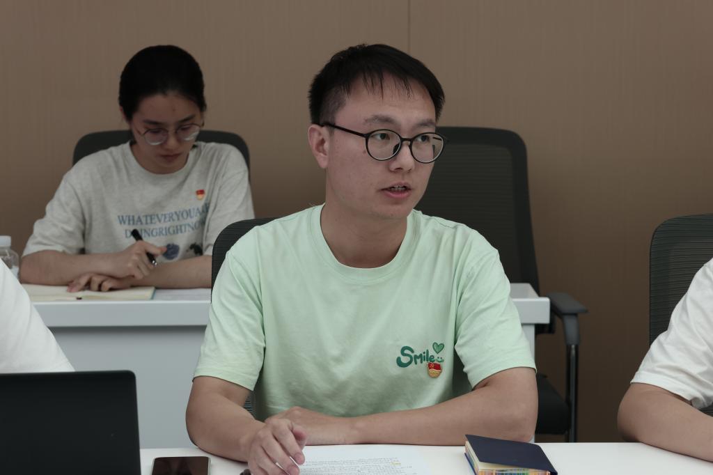 支部党员代表回溯百年党史,从中国共产党人的精神谱系中攫取璀璨星光,在前辈事迹中寻找强化作风建设、凝聚奋进之力的精神源泉。叶鹏讲述无锡籍“两弹一星”元勋姚桐斌在国家需要时挺膺担当、在一穷二白中奋进作为的故事,分享“两弹一星”精神的内涵;陆宇阳讲述“抓斗大王”包起帆用双手改写中国港口历史的故事,分享“劳模精神”的内涵,鼓励支部党员爱岗敬业、担当作为,用匠心赢得未来;郑兴讲述袁隆平院士用一粒种子改变世界的故事,分享科学家们服务国家需要、攀登科学高峰的伟大精神。