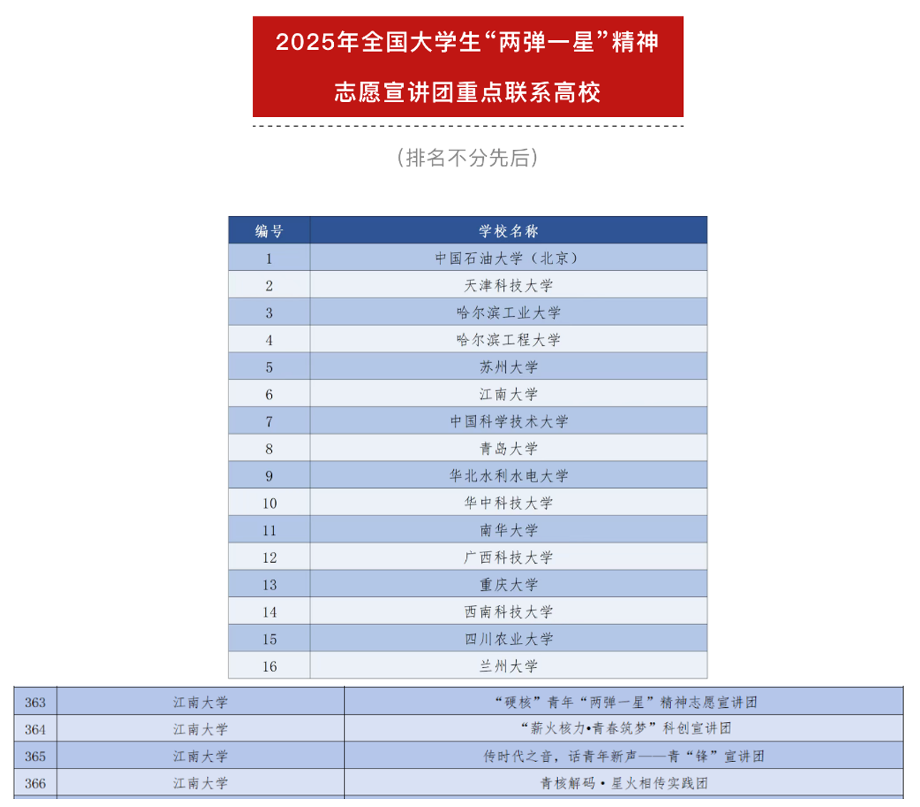 入选全国大学生“两弹一星”精神志愿宣讲团重点联系高校